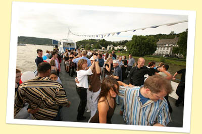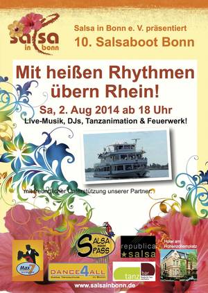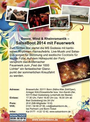 Schwimmende Rheinromantik - Salsaparty -, zum vierten Mal auf der "Party erprobten" Godesia . Live-Musik, Salsa-DJs der Bonner Salsa-Szene, Animationen....