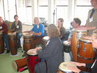 Wer Latin-Musik hört oder darauf tanzt, wird früher oder später von den Rhythmen in Bann gezogen, die in der Regel von Instrumenten wie Conga, Güiro, Claves, Bongos und Timbales und natürlich Piano und Bass - ganz ohne Schlagzeug - gespielt werden. Die Workshops boten Gelegenheit, das einmal selbst auszuprobieren und festzustellen: ist gar nicht so schwer und - groovt! Es gab eine Einführung in die Technik des Congaspiels und die Möglichkeit, verschiedene andere Instrumente auszuprobieren und zu erlernen. Außerdem wurden die Grundstrukturen der Rhythmen im Salsa aufgeschlüsselt und führen zu dem einen oder anderen "Aha"-Erlebnis.