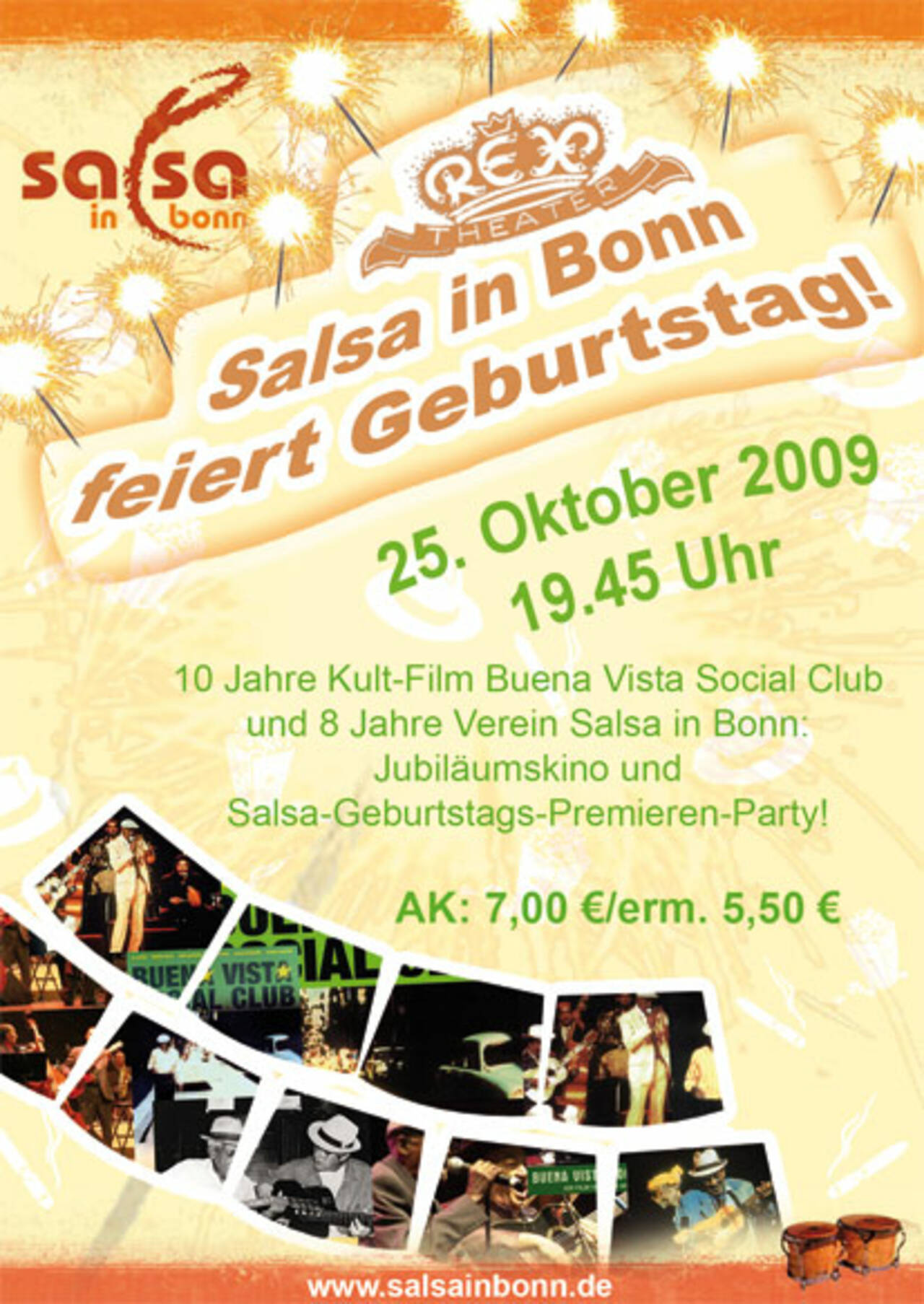Am Sonntag, 25. Oktober ab 19.45 Uhr hatte der Verein Salsa in Bonn zu seinem achten Geburtstag in das Rex-Kino Bonn zu einem ganz besonderen Kino- und Party-Highlight eingeladen.